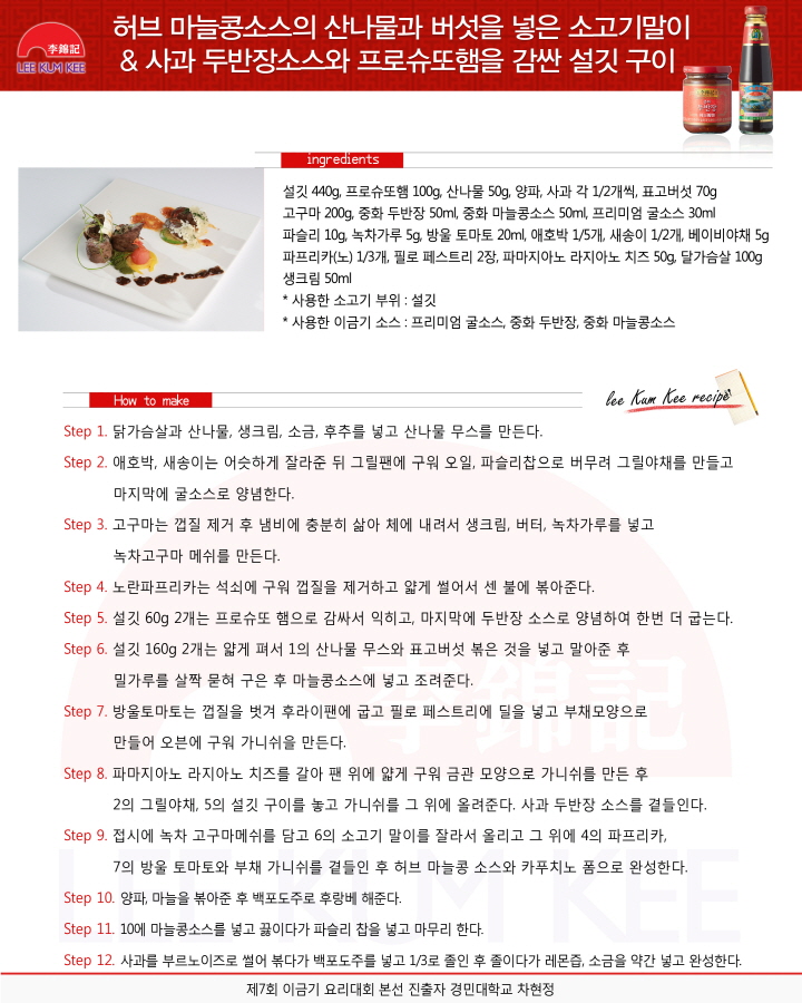 마늘콩소스로 맛을 낸...